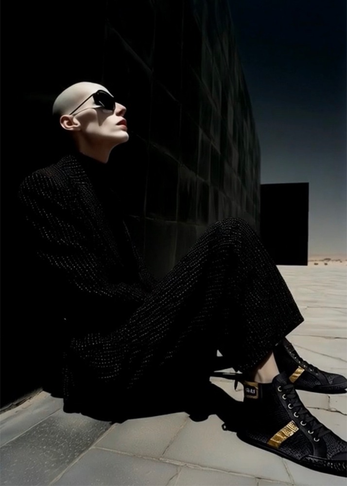 Conceptualizing an entire visual universe for the Golden Snake, where only the sneakers are real. This project is not about artificial random generation, it’s about using AI as an extension of creative vision.